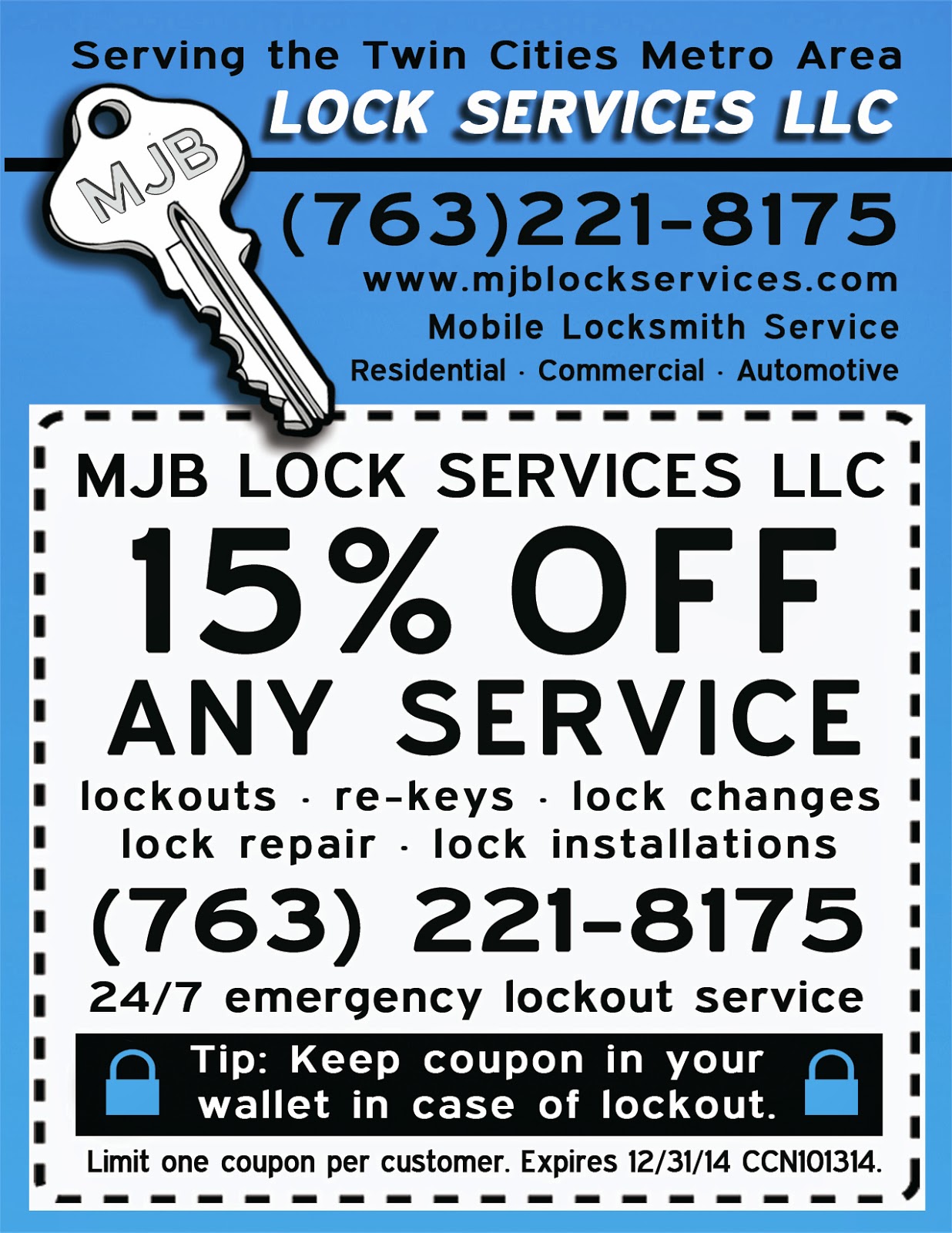 Lets see, what have we done so far. Business cards, logo creation, multiple size and style ads, banners, letterhead, etc. I worked closely with the client making sure they got what they wanted and needed their designs to be. They have been great to work with and told me they are extremely pleased, saying they turned out better than they even hoped they would. And of course, a happy client makes a happy me.MJB Lock Services LLC also wants you to know that you are free to use this coupon and the info on it if you are in need of a locksmith. I can vouch that they are a certified local business, honest, hardworking and affordable. So feel free to look them up for help in the Twin Cities and surrounding areas. www.mjblockservices.com